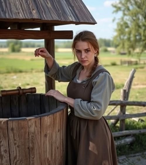 Как только она потянулась к цепочке, чтобы зацепить ведро, рядом раздался мужской голос: