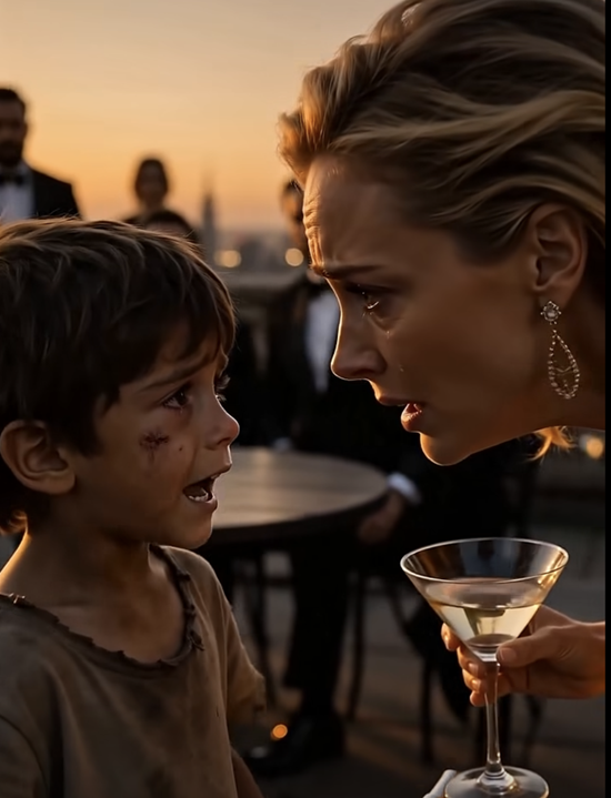 Гости пришли ради шампанского, огней города и фотографий на фоне заката. Золото разливалось по террасе, играя на хрустальных бокалах и дорогих украшениях, а мягкий смех плавал над далёким гулом машин.